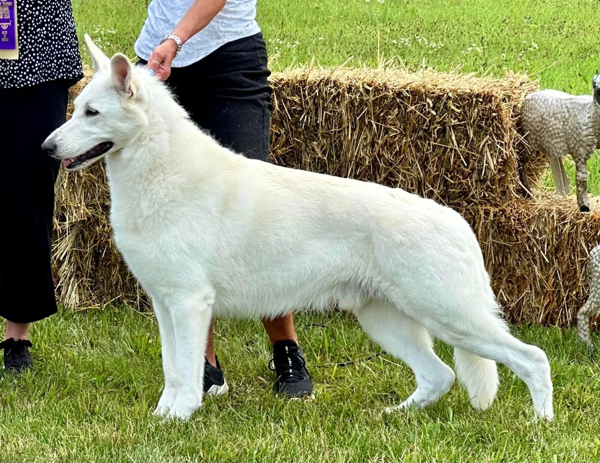 Just as I was careful in selecting Margaux, I spent years trying to decide which male I would use for her first litter. When I came across Flynn, I just had to meet him. So, I did! I had the wonderful opportunity to fly out to Michigan, where I met his owner, Carol Sowa (right), and his breeder, Diana Updike (left)! On top of that, I was able to handle him in a show! When I say this boy is solid, I mean it. He is big with a lovely topline, beautiful expression, and just a big goober all around! When in the ring, Flynn showed himself—the second that show collar was on, he knew exactly what to do!